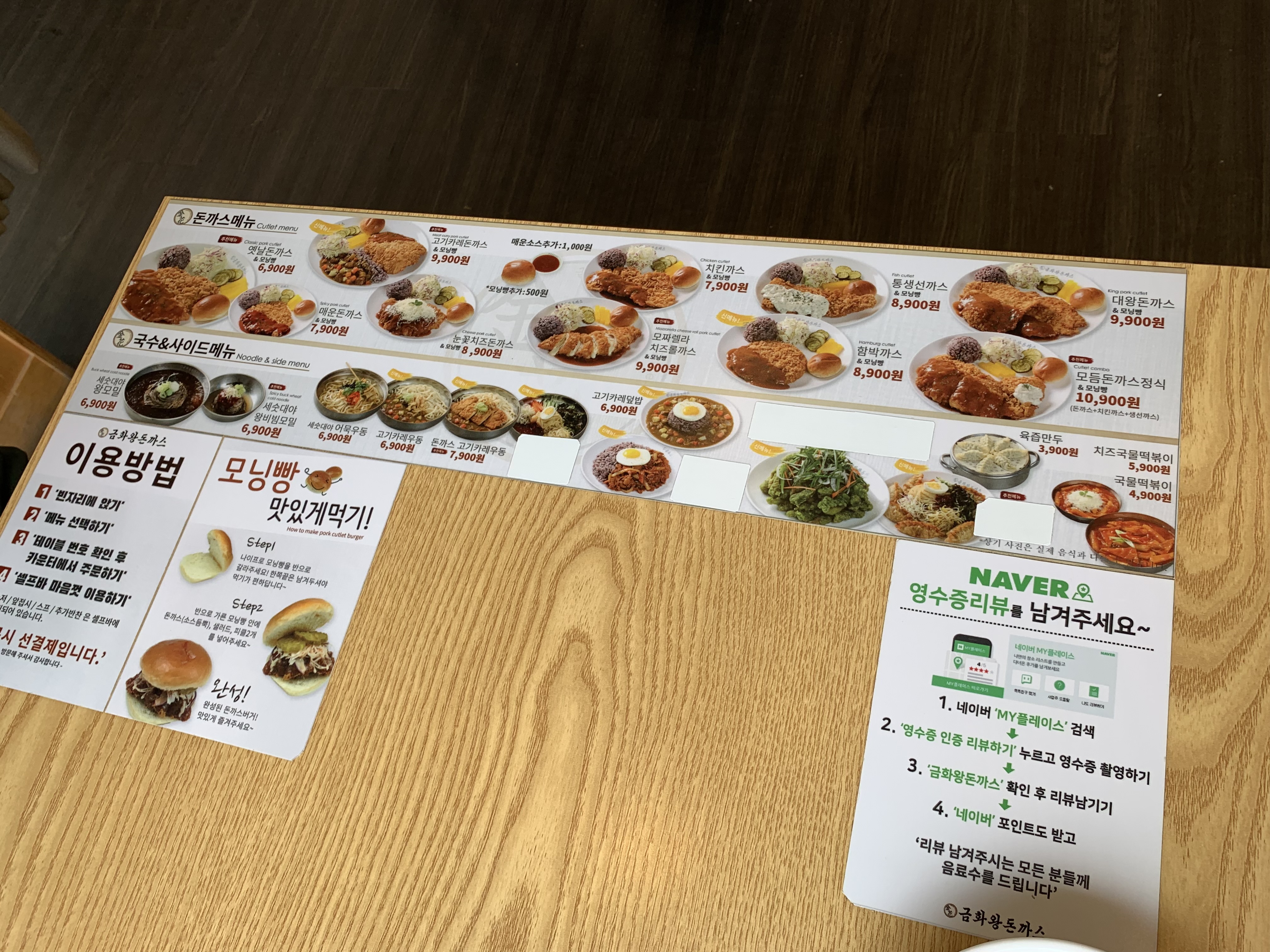 금화왕 돈까스 메뉴입니다