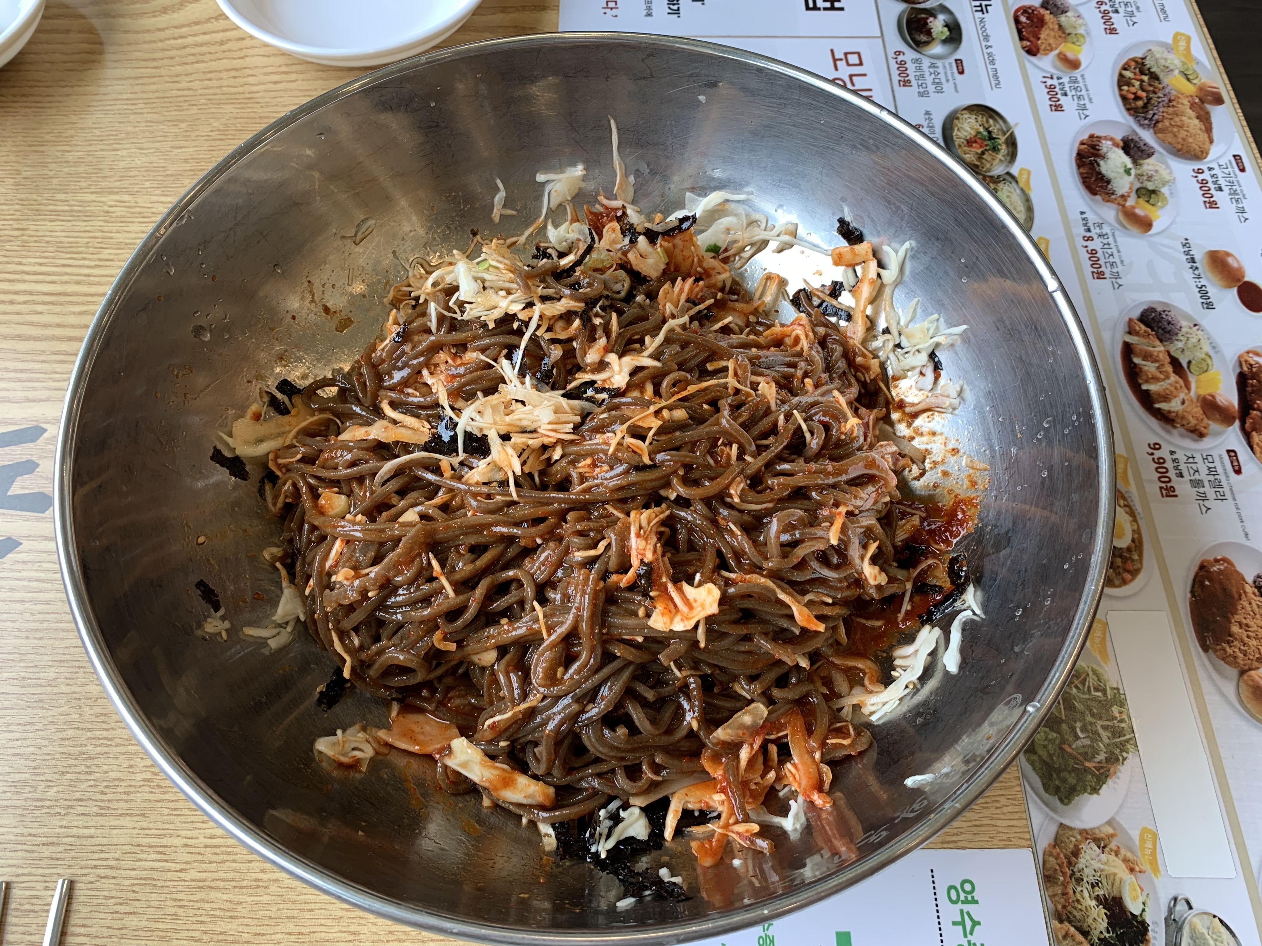 그리고 저희가 주문한 첫번째 메뉴는 왕비빔모밀입니다