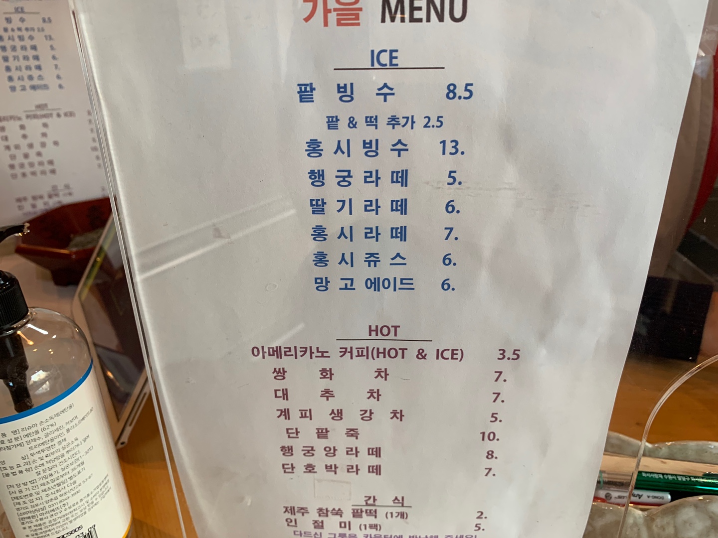 특이한 점은 행궁빙수인데 빙수가 단 두종류밖에 없다는 사실 ㅋㅋ