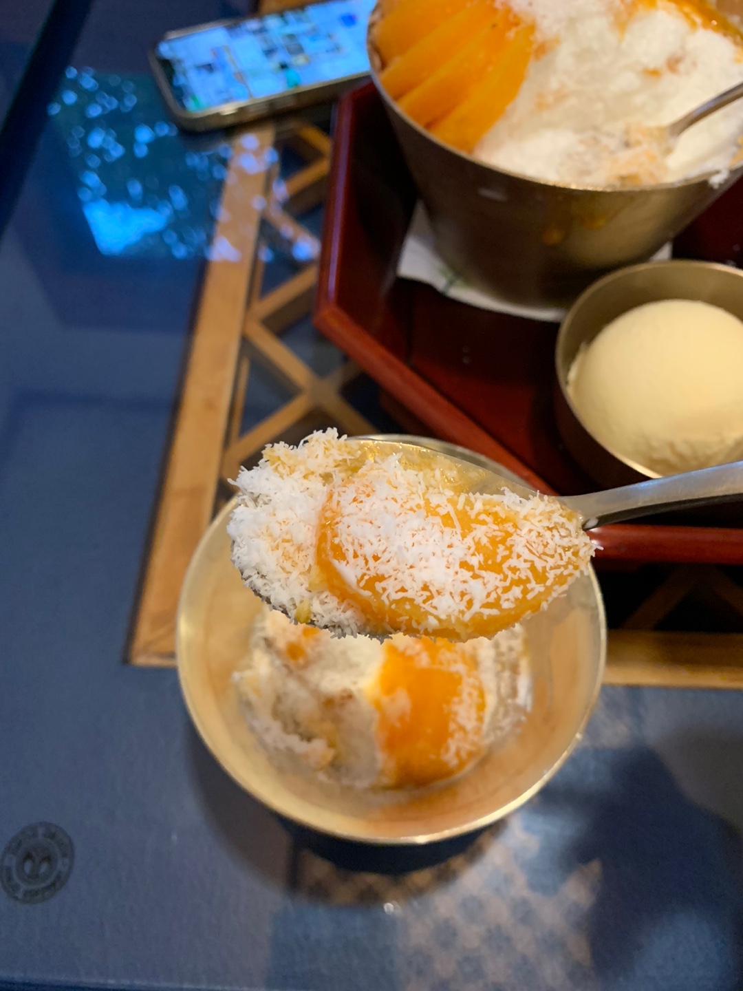 홍시 아래로는 우유맛 눈꽃빙수가 있는데 매우 부드럽다.